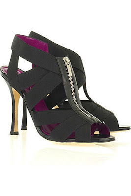 Sergio Rossi designed a peep toe sandals with rubber bands, needle and zipper heel